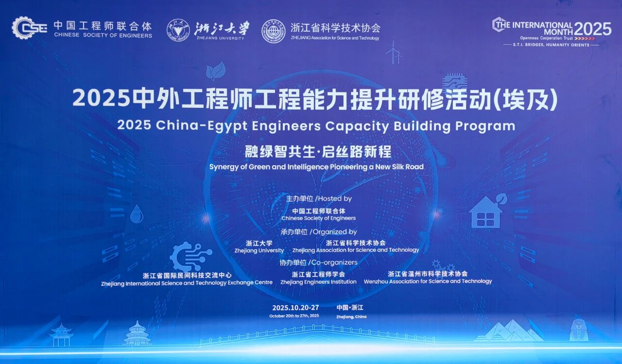 10月21日,由中国工程师联合体主办,浙江大学、浙江省科学技术协会承办,浙江省国际民间科技交流中心、浙江省工程师学会、温州市科学技术协会共同协办的“2025中外工程师工程能力提升研修活动(埃及)”在浙江大学顺利启动。活动以“融绿智共生·启丝路新程”为主题,吸引了来自中国和埃及的70余名工程师参加。